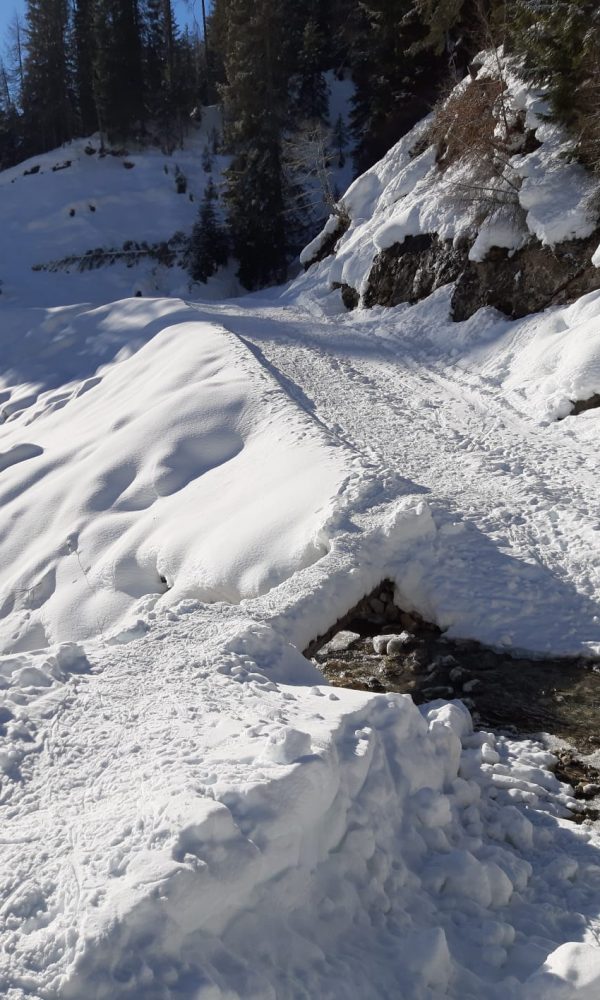 La nostra meta sarà il rifugio attraversando gli innevati prati del Monte Ferro. La vallata di Sappada apparirà in tutto il suo splendore potendola ammirare dalla terrazza del rifugio. Il punto di arrivo, sempre salendo lungo la pista da sci, sarà la stazione di arrivo dello skilift Sasso Alto. Il rientro è previsto tornando dallo stesso percorso.